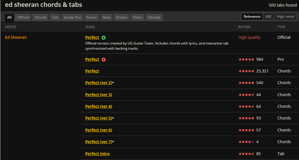 Ultimate-guitar is een website die je als ondersteuning kunt gebruiken bij het spelen van liedjes.
