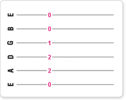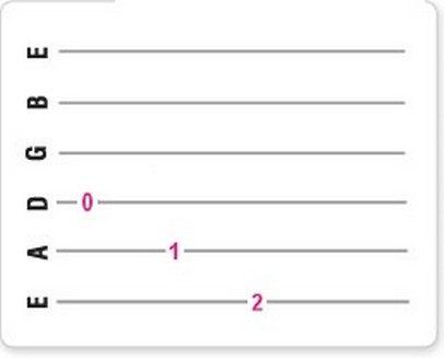 Daarna speel je de A-snaar met je vinger ingedrukt op de 1e fret, en daarna speel je de E-snaar met je vinger ingedrukt op de 2e fret.