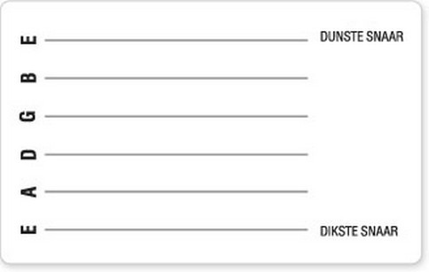 De bovenste lijn op de tab geeft de dunste snaar van de gitaar weer, de onderste lijn de dikste.